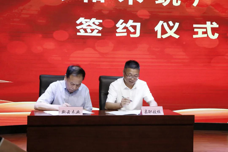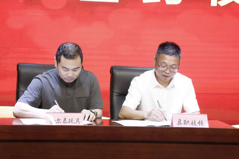 云和職技校黨總支書記、校長(zhǎng)陳偉華與浙江新云木業(yè)集團(tuán)有限公司、云和金成木業(yè)有限公司、浙江忠協(xié)工藝品有限公司、浙江金爾泰玩具有限公司、浙江金馬工藝品有限公司5家企業(yè)代表簽約。